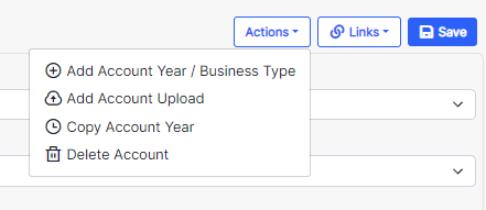 - Add Account Year / Business Type – Launches the side menu to add a new Account Year of the same or a different Business Type.