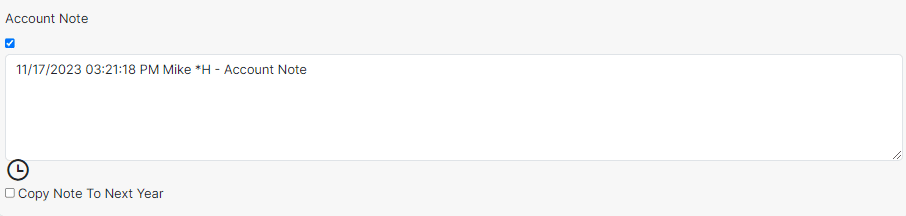 - Account Note – Opens a field for notes that appear only when viewing the Account file.