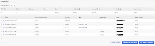 - Link only to this client record — After selecting a call record, links the call only to the current client file. Helpful when multiple client files share a phone number.
